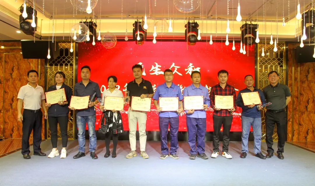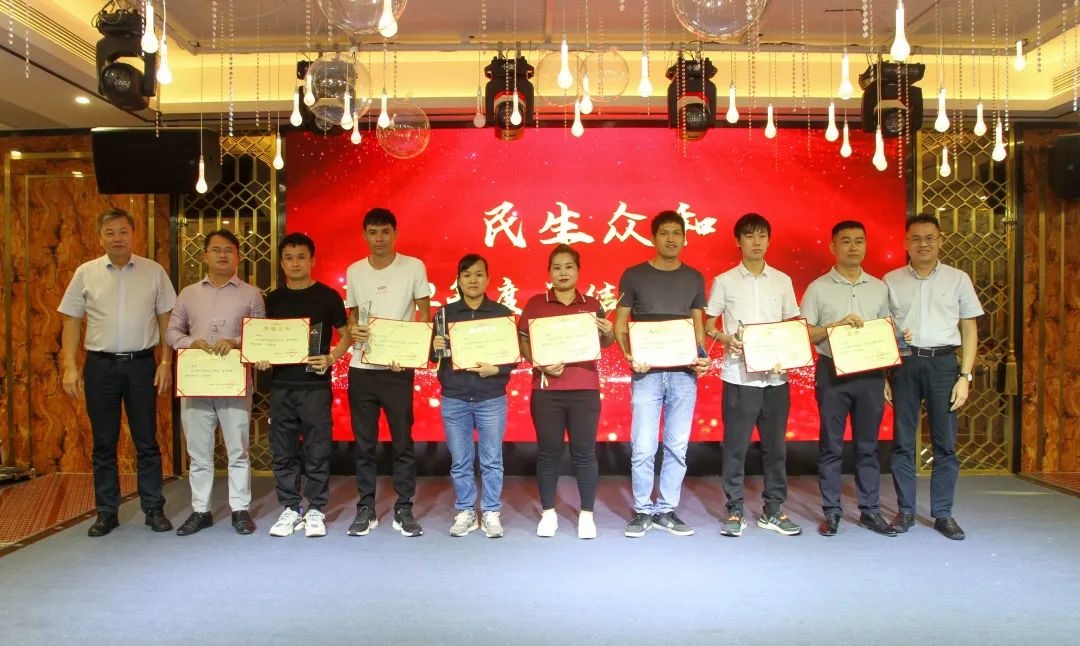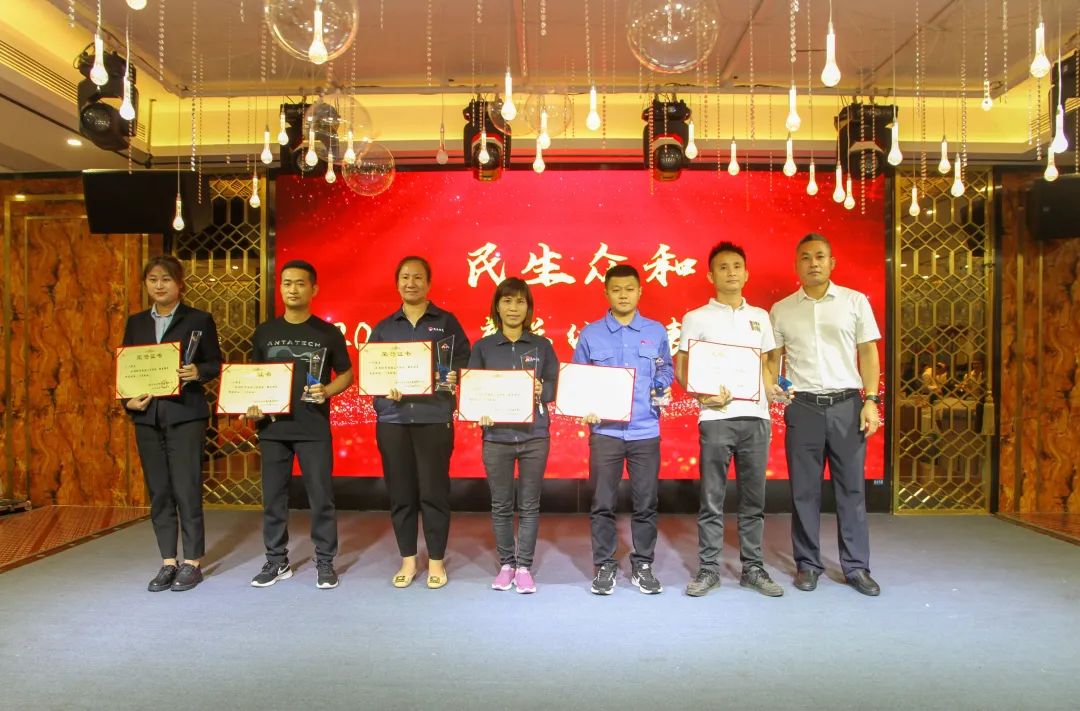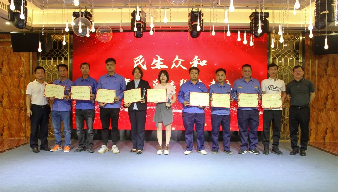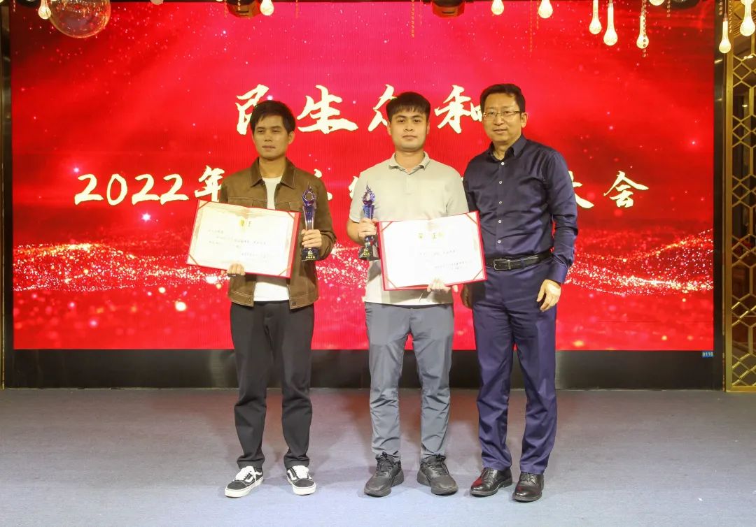 民生眾和集團黨總支書記林少海與集團工會主席毛建中為“崗位能手”頒獎